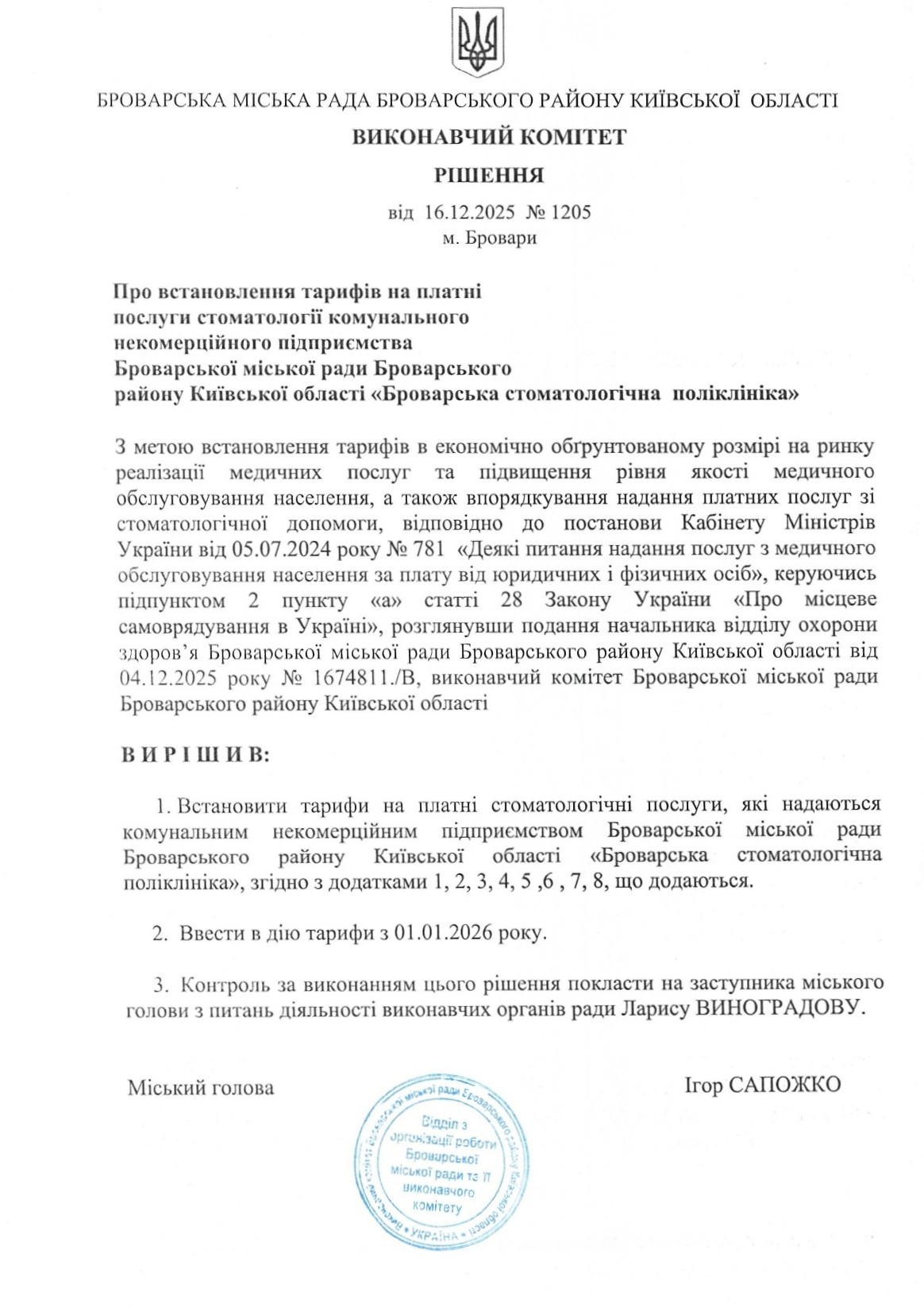 Нові тарифи на стоматологічні послуги з 01.01.2026